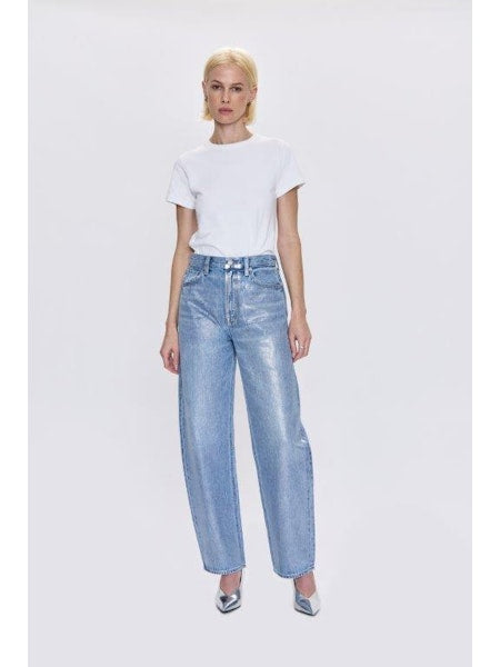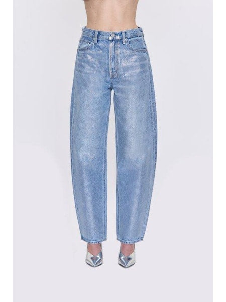The best-selling jean that redefines modern denim. Wes sits at a flattering high rise with a stylish barrel leg silhouette and full-length 30" inseam that creates sophisticated drama. Clean hem finishes add polished detail to the contemporary silhouette. Crafted from our premium rigid non-stretch denim in Spectacle, a vintage inspired medium blue wash with moderate fading and free of distressing for polished, lived-in perfection.