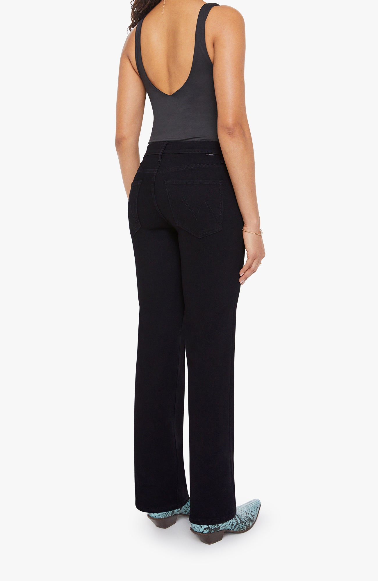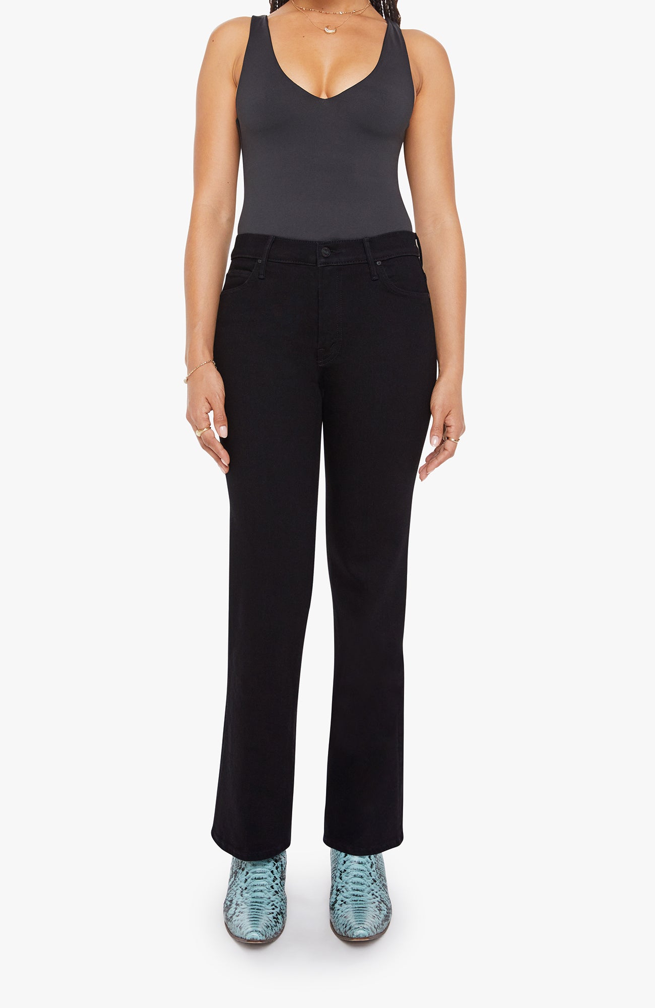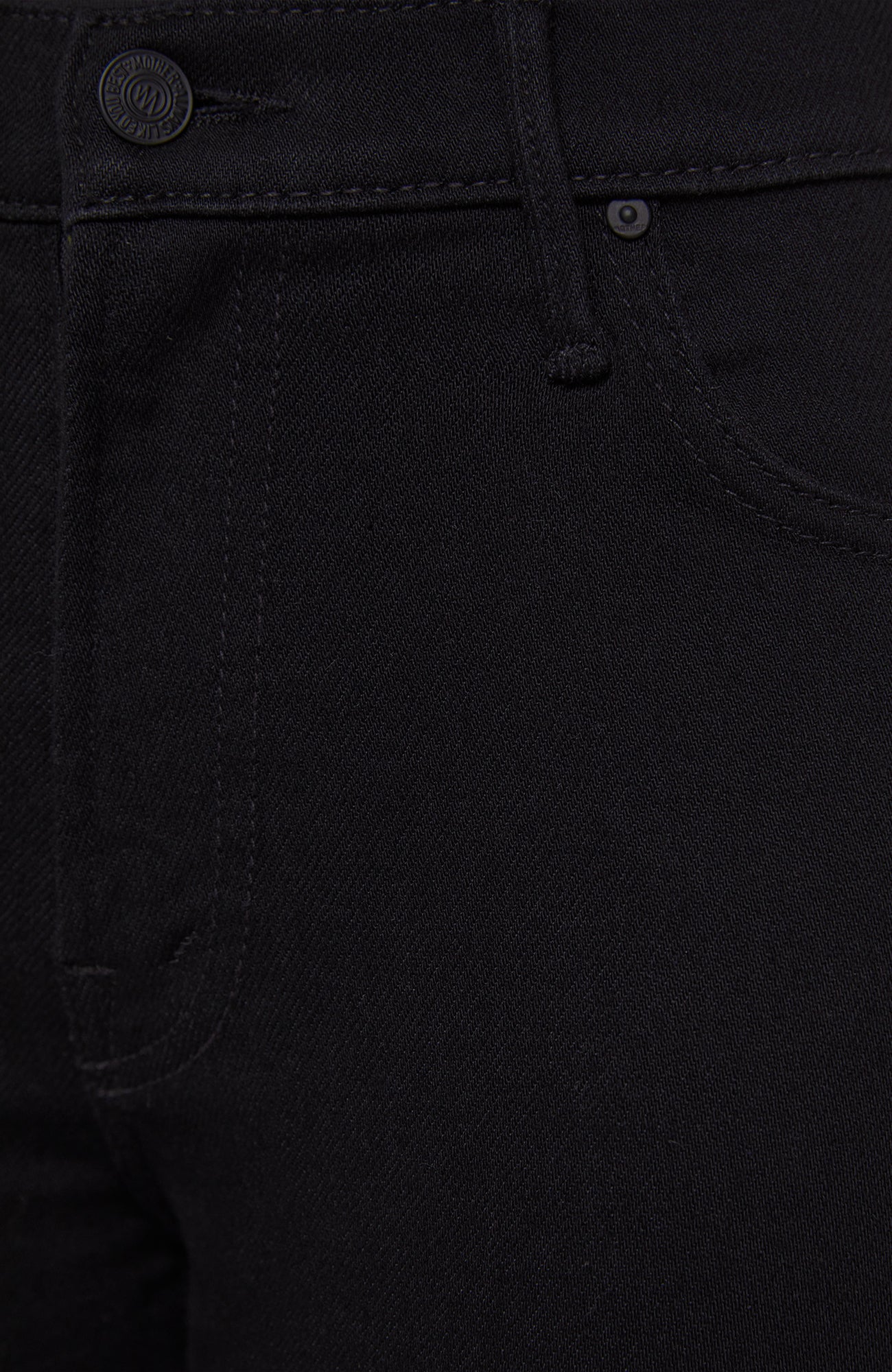A high-rise straight leg jean with a 30-inch inseam and a clean hem. Made from stretch denim, Nighty Night is a true black with tonal hardware.