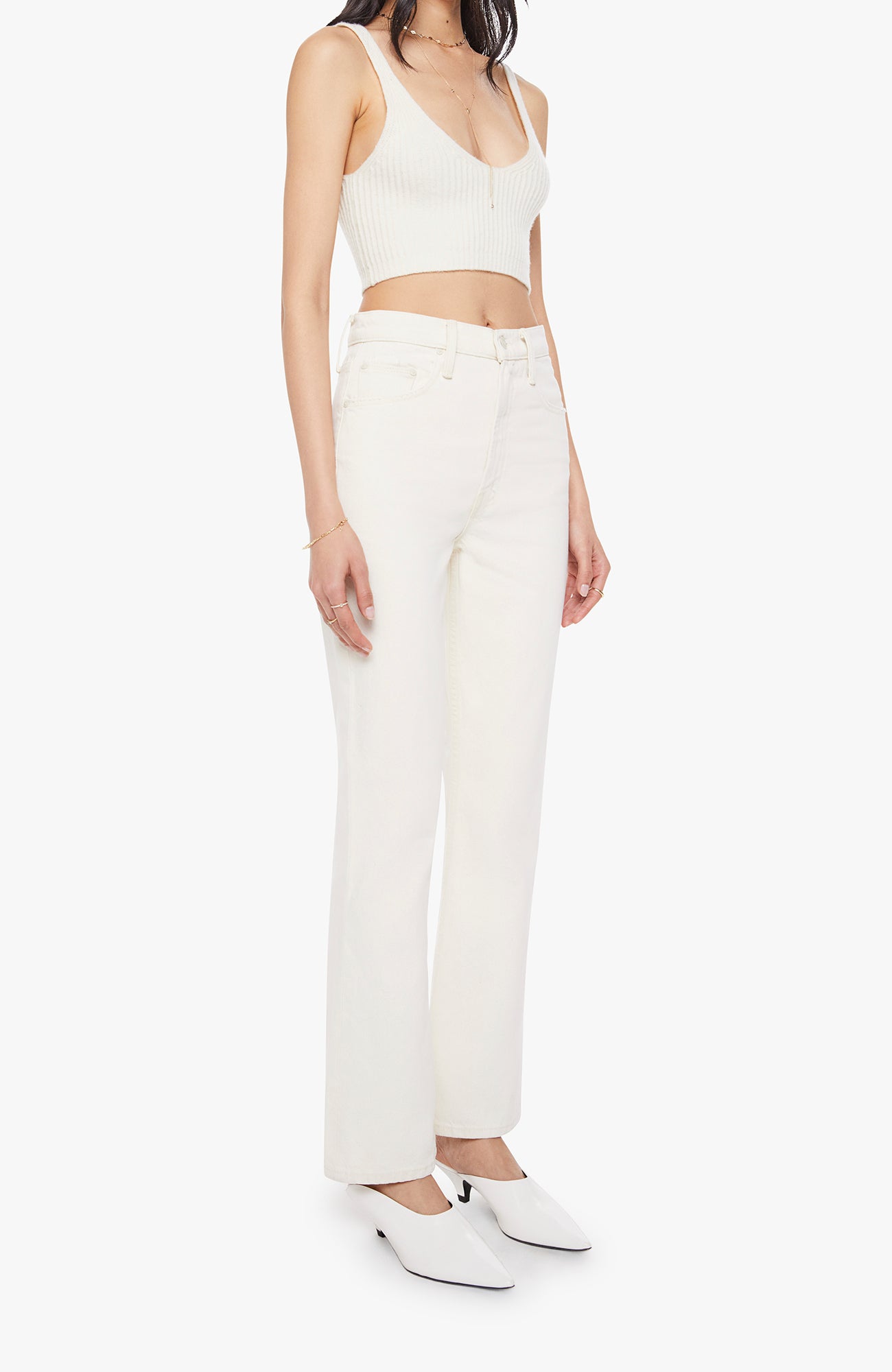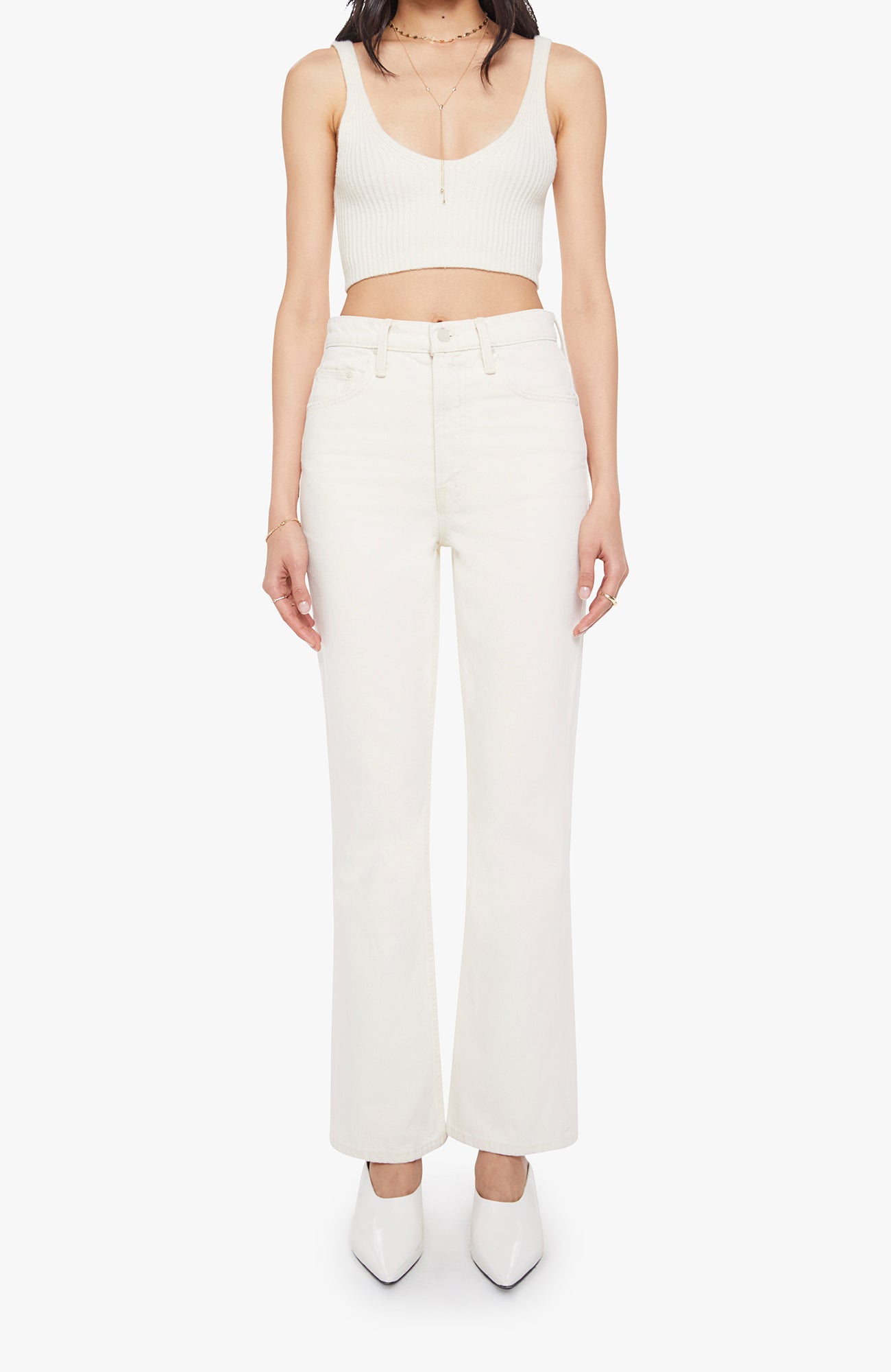 Designed to sit on the hips with a slouchy fit, these jeans feature a flared leg, zip fly, a 32.75-inch inseam and a super high rise with a slightly dropped crotch. Cut from rigid SUPERIOR cotton, Natural Selection is a creamy white with tonal hardware.