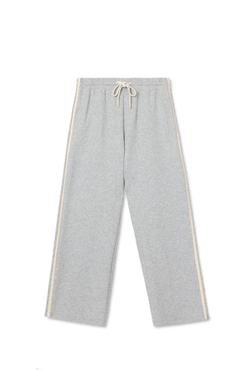 the claud pant is our take on the modern travel track pant. easy, drapey, and finished with two neutral colored stripes down the side seam for that subtle retro touch. made in our soft cotton-poly-spandex blend, it moves with you and keeps its shape, whether you're sprinting through terminals or settling in for a long ride.