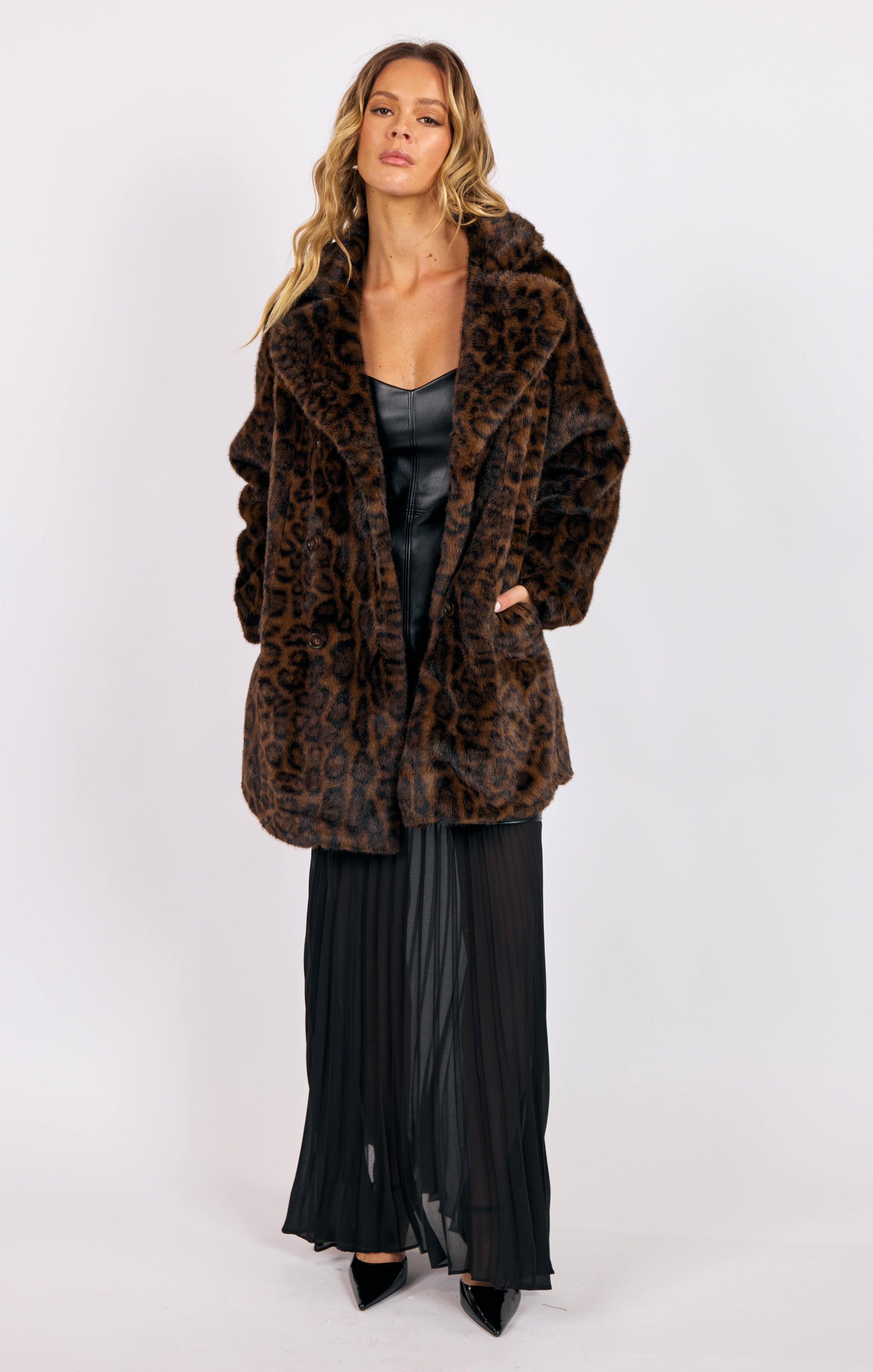 Sage The Label Margot Leopard Faux Fur Coat