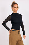 Sadie & Sage Midnight Oil Velvet High Neck Ruched Top
