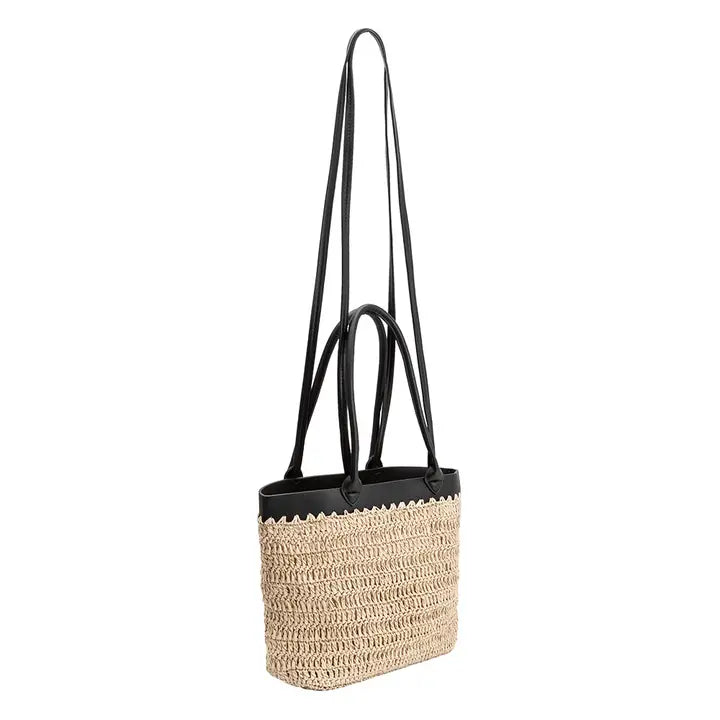 Lina combines style and versatility with double handles and a crossbody strap for hands-free convenience. Its spacious interior easily fits daily essentials, making it perfect for errands, work, or sunny-day outings. * Straw * 13.75"W x 10.5"H x 4"D * Handle Drop: 8" * Strap Length: 47" * Open Top * Unlined * Fits up to an iPhone 16 Pro Max