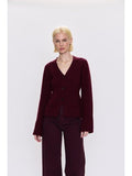 Lightweight wool blend sweater with a soft to the touch hand feel. Longsleeve pullover styling with a shrunken, cropped fit for feminine proportions. Ribbed cuffs, hem, and crew neckline