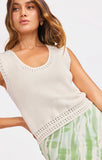 This seasonless off the shoulder rib top with ruching on the sides is so flirty and fun! Long enough to be tucked into high waisted pants or you can pull up to wear as cropped.