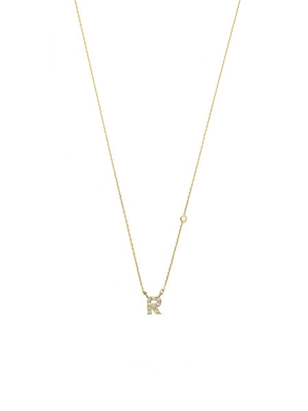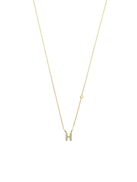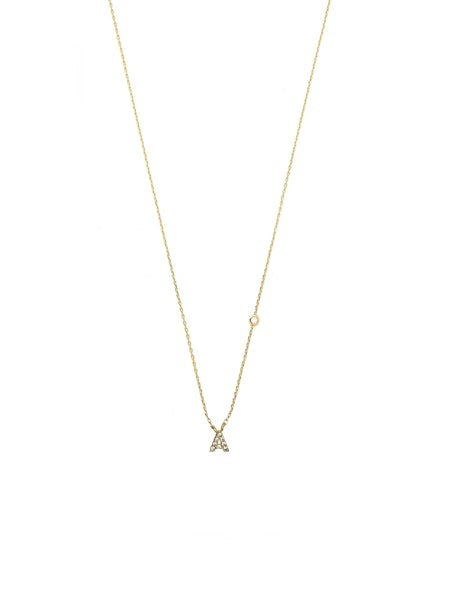 Gold simple chain necklace with a mini CZ letter